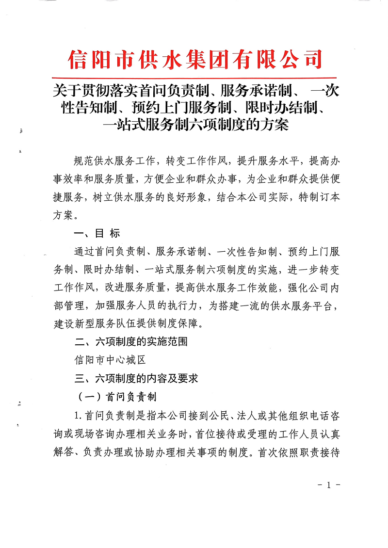 關(guān)于貫徹落實首問負責(zé)制、服務(wù)承諾制、一次性告知制、預(yù)約上門服務(wù)制、限時辦結(jié)制、一站式服務(wù)制六項制度的方案