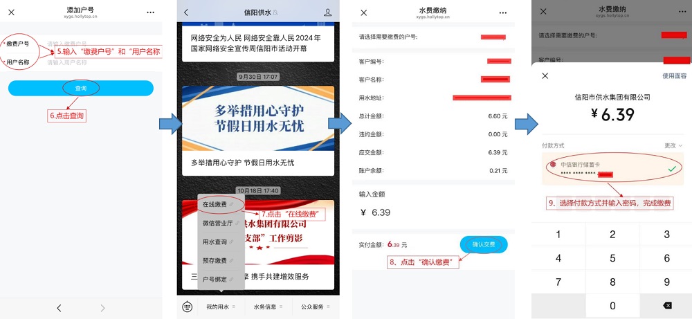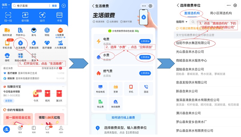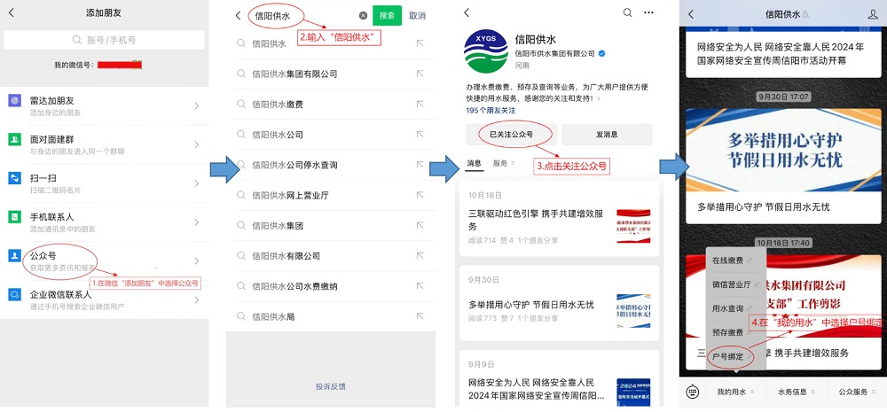 2、關(guān)注微信公眾號(hào)“信陽供水”在線繳費(fèi)