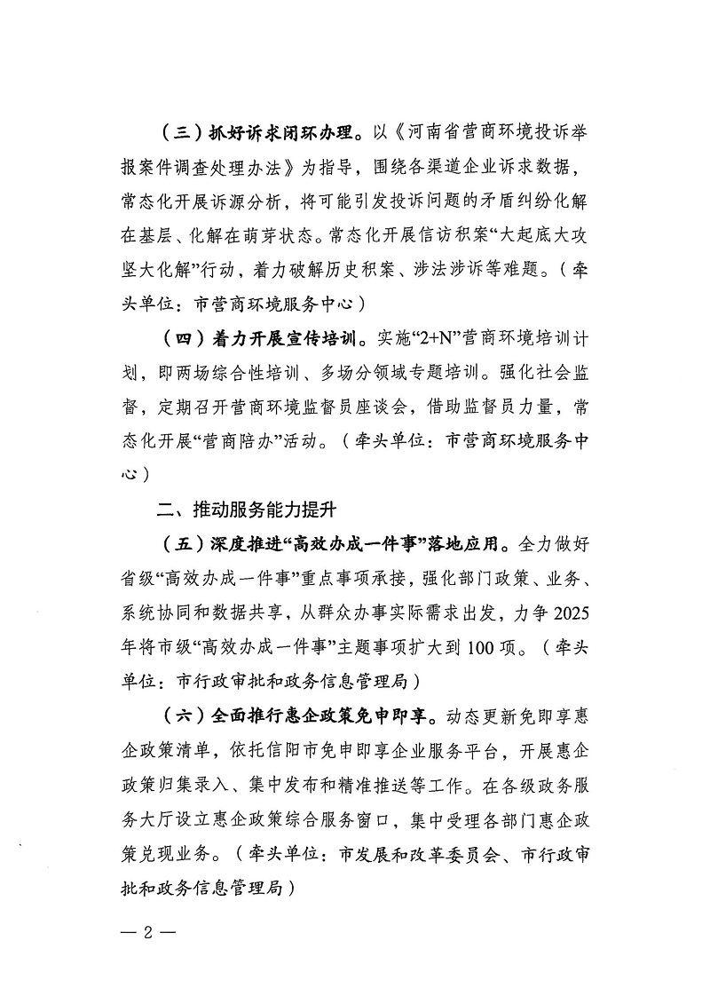 信陽市2025年優化營商環境工作要點