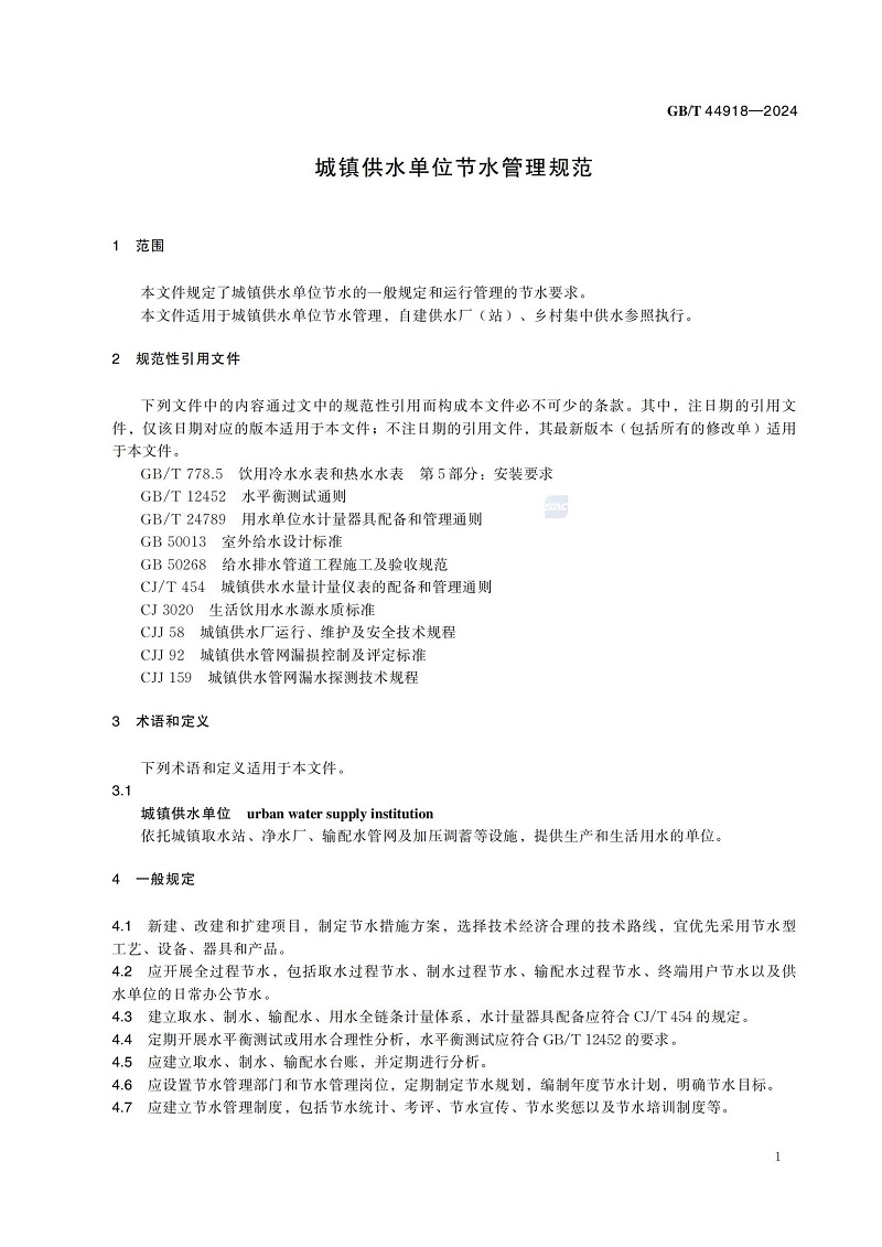 城鎮供水單位節水管理規范(GB/T 44918-2024)