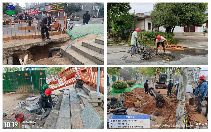 優化材質,破解暗漏難題。據浉河南路茗陽一期熱心居民反映,沿街商鋪樓梯下能聽見水流聲,且流速均勻,連續幾天未停止。在接到反饋的第一時間,市供水公司即判斷大概率為供水管網出現了暗漏,指派測漏人員精準定位,確定為DN200供水管道發生漏損。如貿然破除沿街商鋪樓梯進行搶修,勢必將會對房屋結構和商鋪經營造成影響,市供水公司現場制定“管網繞道”方案,從浉河南路主干管預留三通處,敷設PE200管道與現狀管網進行碰接,同步廢除暗漏管段。在化解問題的同時,保障居民、商鋪的正常經營。
